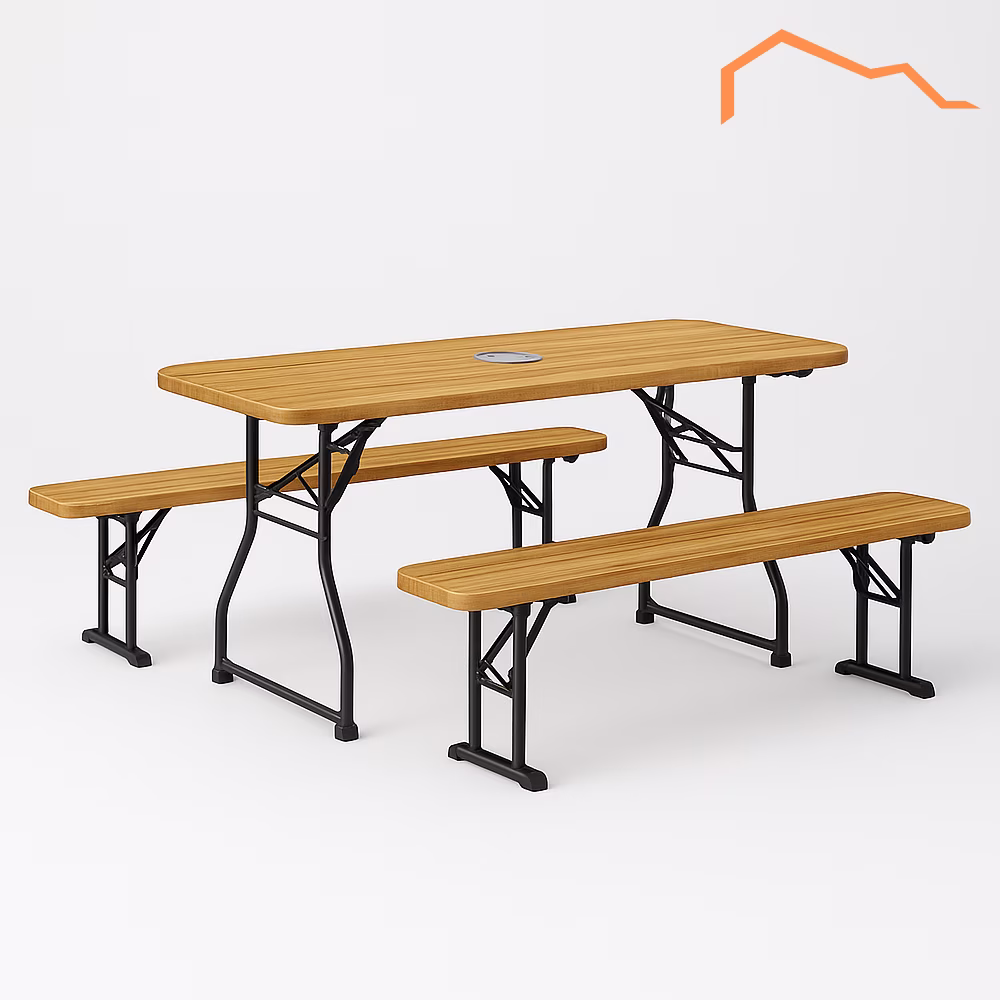 Gezelligheid in zijn puurste vorm! De klassieke biertafel hoort bij ieder feest of festival. In combinatie met stevige houten klapbanken die in no-time zijn uitgeklapt.